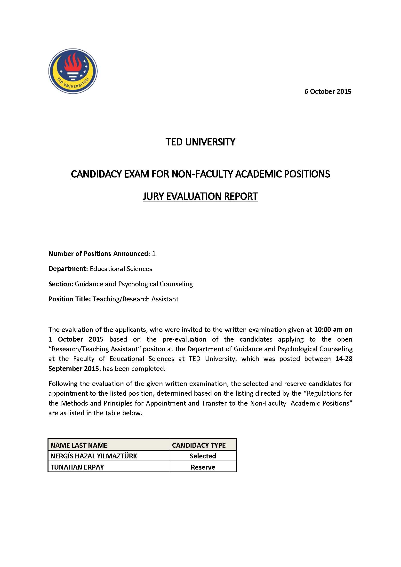 Candidacy Exam For Non-Faculty Academic Positions Jury Evaluation Report