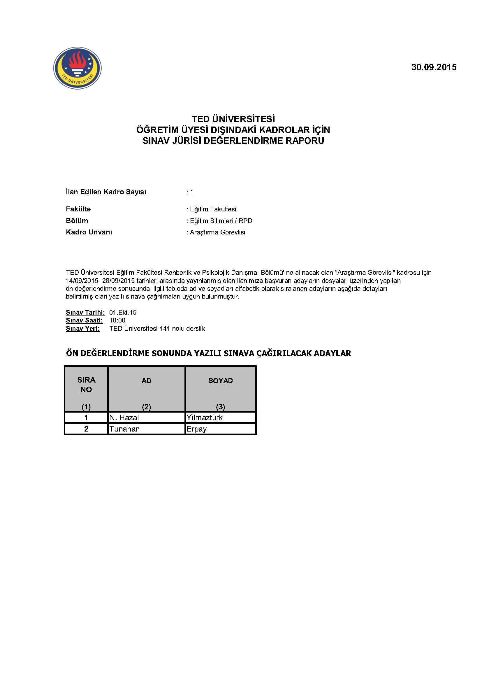 EĞİTİM FAKÜLTESİ - ARAŞTIRMA GÖREVLİSİ - ÖNDEĞERLENDİRME SONUÇLARI