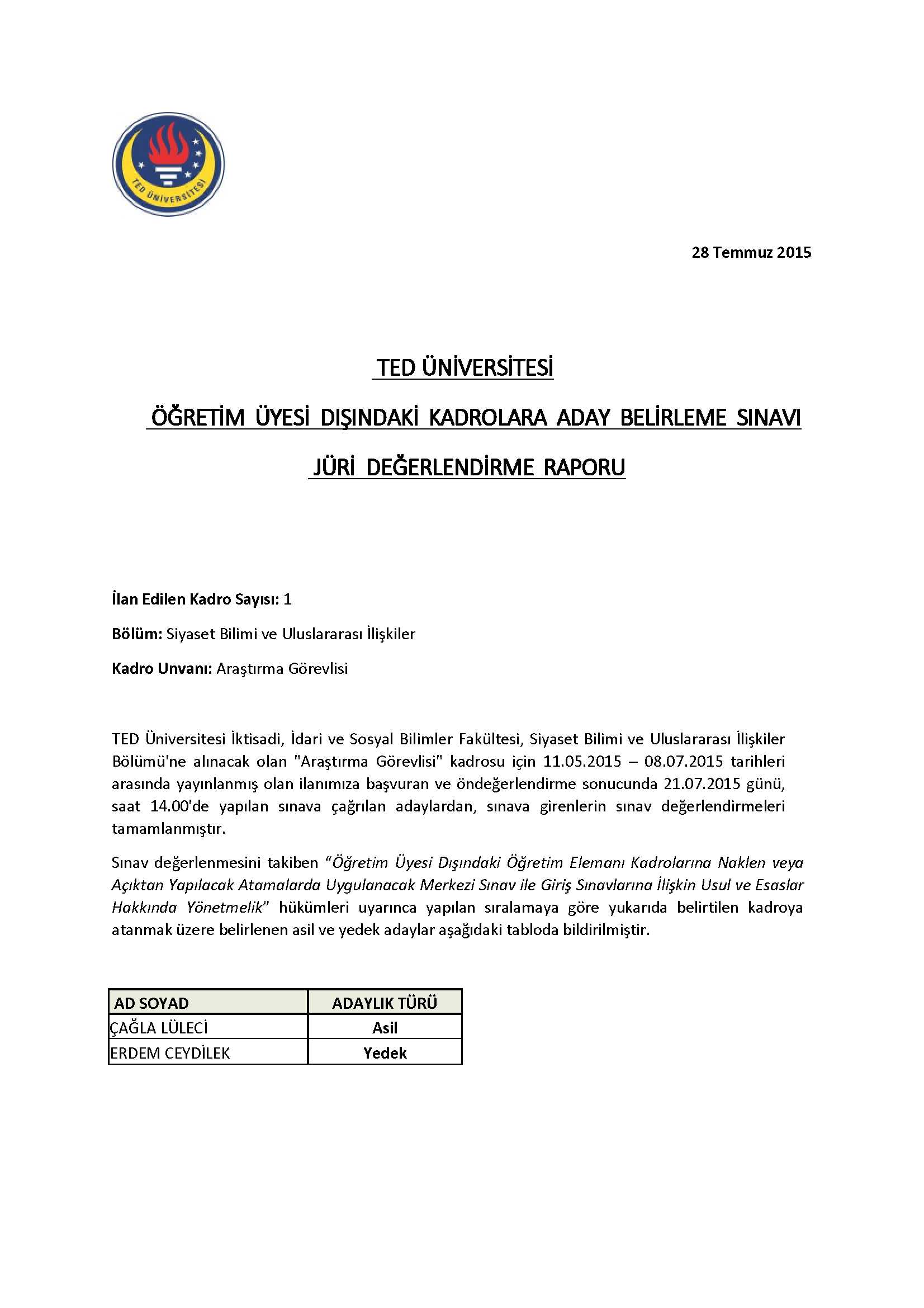 İİSBF - SİYASET BİLİMİ VE ULUSLARARASI İLİŞKİLER ARAŞ. GÖR. SINAV SONUÇLARI